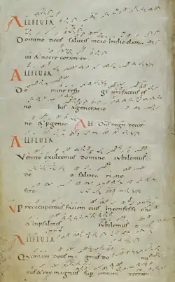 Sunt cunoscute două sisteme inițiale de notație cu neume, denumite Coislin and Chartres, inlocuite în secolul al XII-lea de o notație exactă.