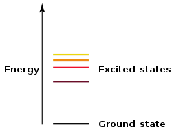 Dacă un atom, electron, ion sau moleculă se află pe nivelul de energie cel mai scăzut posibil, atunci se spune despre aceștia că se află în starea inițială (sau fundamentală). Pe de altă parte, dacă a absorbit energie și a trecut pe nivele de energie superioară, atunci specia chimică se află într-o stare excitată (sau de excitație).[1]