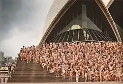 Fotografia unui grup de persoane nude, realizată în locuri publice a fost făcută în întreaga lume cu sau fără cooperare oficială. Adunarea în sine este propusă ca o formă de artă, în timp ce imaginile rezultate devin opera de artă care pornește de la identitățile oamenilor care pozează și locația selectată: peisaje urbane, pitorești sau situri cu semnificație istorică. Fotografii, printer care si Spencer Tunick [12] [13] [14] și Henning von Berg sustin ca exista o varietate de motive artistice, culturale și politice pentru munca lor, în timp ce persoanele care se lasă fotografiațe pot fi modele profesionale sau voluntari neplătiți, atrași de proiect din motive personale.