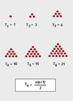 Echivalent, un număr triunghiular este suma primelor n numere naturale de la 1 la n.