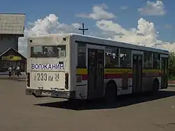 Autobuz al cărui număr de înmatriculare este reprezentat cu litere de dimensiuni mari