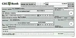 - Banca destinatară - banca care recepționează și acceptă ordinul de plată, în nume propriu sau pentru un client al său, în calitate de beneficiar.