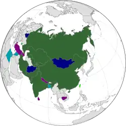- ↑ These countries have not yet signed memorandums granting them the status of SCO dialogue partner, so they are not de jure dialogue partners yet. Historically, such memorandum has been signed within a year from an announcement that a country is approved as SCO dialogue partner.