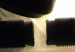 2 vecine.[30] Oxigenul lichid este atras de un magnet într-o așa măsură încât, în demonstrațiile de laborator, un firicel de oxigen lichid poate rezista împotriva propriei greutăți între polii unui magnet puternic.[36][d]