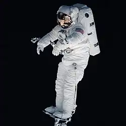 - ↑ Webb JT, Olson RM, Krutz RW, Dixon G, Barnicott PT (). „Human tolerance to 100% oxygen at 9.5 psia during five daily simulated 8-hour EVA exposures”. Aviat Space Environ Med. 60 (5): 415–21. PMID 2730484.