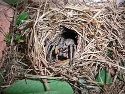 Păianjen-lup în vizuina sa