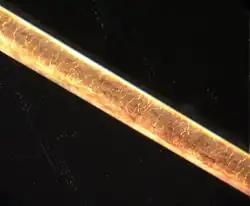 Părul uman, văzut la o scară de 200x