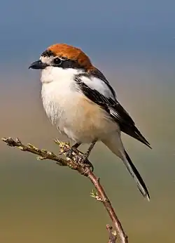| Oxyura leucocephala (Scopoli, 1769)[143][144] | Rață cu cap alb, Rață cu cioc albastru, Rață arămie, Rață cu coadă spinoasă. | Monotipică | În România în trecut era o specie cuibăritoare (în Transilvania și Delta Dunării). Ultima atestare a cuibăritului provine din anii ’80 din Delta Dunării. În prezent este o specie de pasaj și oaspete de iarnă rar, în special pe lacurile litorale (Techirghiol) și cu apariție accidentală în alte zone ale țării. | Populația care iernează este de 5-10 exemplare, iar în timpul pasajelor se pot observa între 10 și 80 de exemplare. | ![]() | |