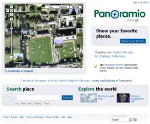 - ↑ en „The Official Website of Panoramio”. Accesat în .