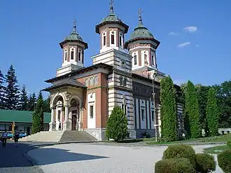 Biserica nouă a Mănăstirii Sinaia - Mănăstirea Sinaia (monument istoric, complex monahal de călugări) așezământ religios construit în secolul al XVII-lea, ctitoria spătarului Mihai Cantacuzino, fiul marelui postelnic Constantin Cantacuzino.