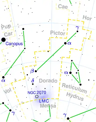 | Cea mai strălucitoare | α Dor (3,27m) |