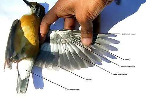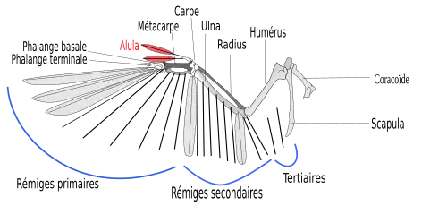 Marginea anterioară a aripii este acoperită de tectrice marginale numite și supraalarele marginale, care continuă spre bordul aripii supraalare mici și ocupă pliul aripii.