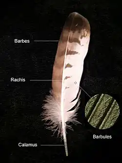 O pană de contur este formată dintr-o axă și din două serii de lame numite barbe , fixate pe laturile axei. Barbele au pe laturile lor două serii de lamele fine, numite barbule, prevăzute cu cârliguțe, cu ajutorul cărora barbulele de pe barbele vecine se prind între ele. Ansamblul barbelor unei pene constituie vexilul, numit și steag sau stindard.