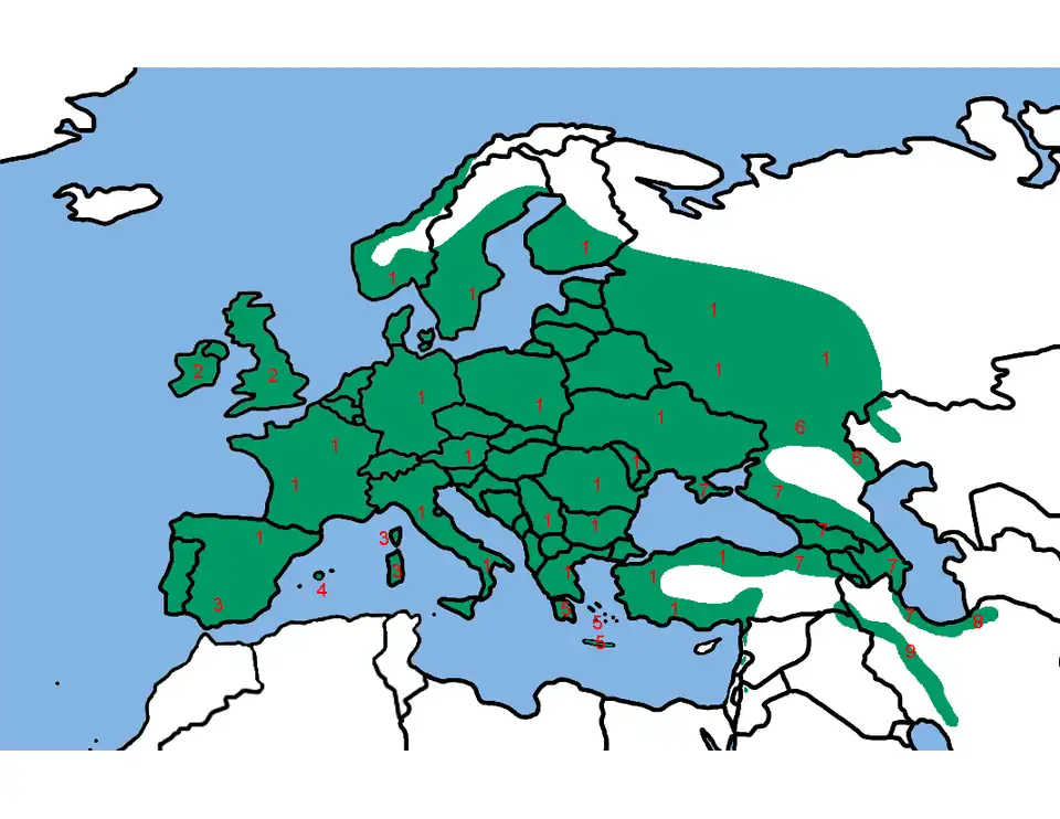 Specia este comună, în unele locuri numeroasă, rară de-a lungul limitei nordice și în sud-estul arealului. Cuibărește uneori în afara limitelor normale ale arealului, de ex. în nord-estul Siriei (unde de altfel apare accidental).[13][14]