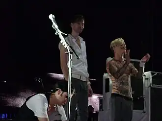 ![]() Placebo într-un concert în Polonia, 2012. De la stânga la dreapta: Fiona Brice, Brian Molko, Steve Forrest, Bill Lloyd. | |
