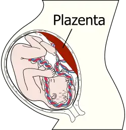 Placenta este un organ fetal temporar care începe să se dezvolte din blastocist la scurt timp după implantare. Acesta joacă un rol esențial în facilitarea schimbului de nutrienți, gaze și reziduuri între circulația maternă și cea fetală, separate fizic și este un organ endocrin important care produce hormoni care reglează atât fiziologia maternă, cât și cea fetală în timpul sarcinii. Placenta este legată de bebeluș prin cordonul ombilical, iar pe partea opusă a uterului matern într-o manieră dependentă de specie. La om, un strat subțire de țesut decidual (endometrial) matern dispare odată cu placenta atunci când este expulzat din uter după naștere (uneori denumit incorect „partea maternă” a placentei). Placentele sunt o caracteristică definitorie a mamiferelor placentare, dar se găsesc și în marsupiale și unele non-mamifere cu diferite niveluri de dezvoltare[1].