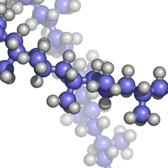 Structura polipropilenei: Carbonul este albastru - Hidrogenul gri