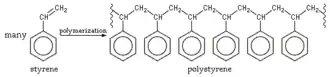 Ca exemplu, reacţia de polimerizare a stirenului, în urma căreia se obține polistirenul.