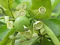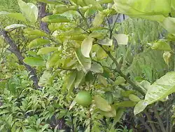- Fructul arată ca un grapefruit de culoare verde gălbui; are diametrul cuprins între 12 și 27 de centimetri și coaja groasă de 0,5-2,5 cm.