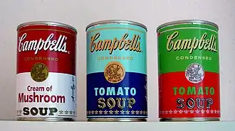 În anul 1960, cea mai notabilă personalitate pop art - Andy Warhol - inițiază seria Sticlele de Coca-Cola și Cutiile de conserve, reprezentări ale obiectelor de uz casnic, produse industriale sau motive de reclamă. Ulterior el inserează în pictura sa fragmente de benzi desenate, cu structuri rezistente sau elastice. El reproduce, de asemenea, obiecte în dimensiunile lor adevărate. Andy Warhol aplică tehnica seriografiei, care permite multiplicare repetată a motivului.
