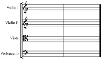 Se folosește pentru ansambluri vocale și instrumentale; cuprinde un număr mai mare și variabil de portative simple, în funcție de componența ansamblurilor vocale sau instrumentale pentru care se scrie opera de artă. De exemplu: