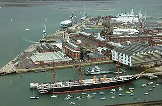 Portsmouth este unul dintre cele mai cunoscute porturi din lume. HMNB Portsmouth este cel mai mare șantier naval pentru Royal Navy și este casa a două treimi din flota de suprafață din Marea Britanie. Orașul este casa unor nave celebre, printre care HMS Warrior, Tudor caracă Mary Rose și emblematice Horatio Nelson, HMS Victory (cea mai veche navă navală din lume încă în comisie). Fosta HMS Vernon stabilirea țărm naval a fost reproiectată ca un parc de retail cunoscut sub numele de Gunwharf Quays. Portsmouth este printre puținele orașe britanice cu două catedrale: Catedrala anglicană St Thomas și Catedrala Romano-Catolică Sf Ioan Evanghelistul. Malul mării și Portsmouth Harbour sunt dominate de Turnul Spinnaker, una dintre cele mai înalte structuri din Regatul Unit la 560 de picioare (170 m). Southsea în apropiere este o stațiune de pe litoral, cu un parc de distracții dig și castel medieval.