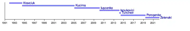 | Viktor Iușcenko | ![]() | 23 ianuarie 2005 — 25 februarie 2010 | Ucraina noastră | Ales de popor |