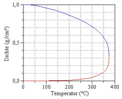 La ridicarea temperaturii crește presiunea și densitatea vaporilor în aceeași măsură scade densitatea lichidului. Proprietatea apei și vaporilor prin creșterea continuă a temperaturii vor deveni tot mai asemănătoare, până la punctul critic când va deveni identică, când va exista o singură fază (vezi figura alăturată). La apropierea de punctul critic dispare căldura de evaporare apărând fluctuații a densității, care poate fi recunoscut prin o opalescență critică.