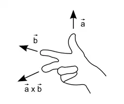 unde este un versor perpendicular pe planul determinat de și având aceeași origine și orientat după regula burghiului și anume în sensul de înaintare a unui burghiu când se rotește către .