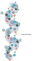 [6].Legăturile de hidrogen se pot stabili și între catenele lateralecare au grupări carboxil, hidroxil, amino sau tiolice. Din punct de vedere energetic legătura de hidrogen nu este puternică dar datorită răspîndirii relativ uniforme de-a lungul scheletului proteic oferă proteinei stabilitatea necesară.