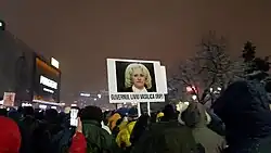 - ↑ „Peste 12.000 de oameni la protestul „Cod Roșu de OUG" din Piața Victoriei. Mii de persoane au ieșit în mai multe orașe din țară. S-a scandat "Dictatorul", "Analfabeta", "Demisia!"”. G4Media.ro. .