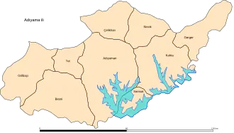 Adıyaman este divizată în 9 districte (capitala districtului este subliniată):