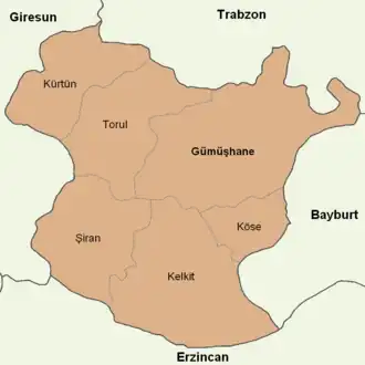 ![]() Poziția provinciei Gümüșhane în Turcia | |