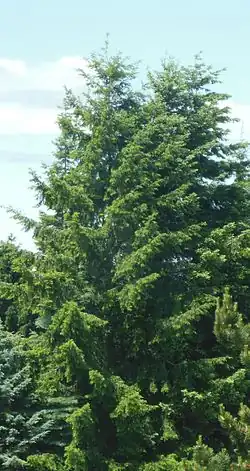 | Pseudotsuga menziesii (Mirb.) Franco Verde: Pseudotsuga menziesii subsp. menziesii Albastru: Pseudotsuga menziesii subsp. glauca. | |