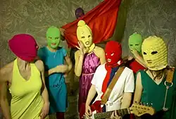 ![]() Cei șapte membri ai trupei Pussy Riot. | |