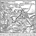 La 6:30 dimineața, pe 4 iunie 1745, când trupele austro-saxone se odihneau de pe urma marșului lung, capcana a fost declanșată în Bătălia de la Hohenfriedberg. Forțele austro-saxone nu au putut rezista în fața cavaleriei prusace. Planul lui Frederick a întâmpinat dificultăți . Nu a fost suficient spațiu pentru toate trupele prusace pe ruta desemnată. Forțele sale erau blocate la podul de peste Striegau. Primul obiectiv prusac au fost cele două dealuri din fața liniilor saxone. Armata saxonă a ocupat aceste două dealuri în ziua precedentă cu o forță mică. Avangarda prusacă a înfruntat această forță; iar ciocnirea a rezultat alertarea saxonilor, împiedicând aplicarea planului lui Frederick așa cum sperase.