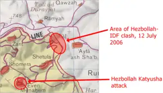 În ziua de 12 iulie 2006, în jurul orei locale 8:07 (05:07 UTC), Hezbollah a lansat un atac cu rachete asupra pozițiilor militare israeliene din apropierea coastei și de lângă satul de frontieră Zar'it[55], ca și asupra orașului israelian Shlomi și asupra altor sate[56]. În același timp, un contingent terestru al Hezbollah a traversat frontiera stabilită de ONU și a pătruns în teritoriul israelian, a atacat două autovehicule israeliene HUMVEE, care patrulau pe partea israeliană a graniței, în apropiere de Zar'it, și au ucis trei soldați isrelieni, au rănit doi și au capturat alți doi(Ehud Goldwasser și Eldad Regev)[55][57]. Alți cinci soldați israelieni au fost uciși, iar un tanc a fost distrus pe teritoriul libanez de frontieră într-o încercare nereușită de a-i salva pe soldații capturați[55].