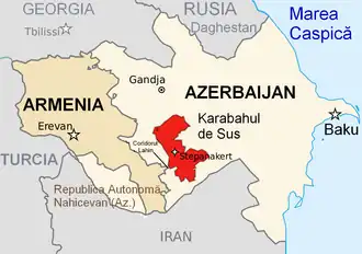 Războiul din Nagorno-Karabah (de asemenea Primul război din Karabahul de Munte) a fost un conflict armat care a avut loc la sfârșitul anilor 1980 și până în 1994, în enclava Nagorno-Karabah din sud-vestul Azerbaidjanului, între majoritatea etnicilor armeni din Nagorno-Karabah susținuți de Republica Armenia, și Republica Azerbaidjan. Odată cu desfășurarea războiului, Armenia și Azerbaidjan, ambele foste republici sovietice, s-au implicat într-un război prelungit, nedeclarat în zona muntoasă Karabah. Azerbaidjan a încercat să tempereze mișcarea secesionistă din Nagorno-Karabah, dar parlamentul enclavei a votat unificarea cu Armenia. Referendumul a fost boicotat de populația azeră a regiunii Nagorno-Karabah, majoritatea alegătorilor au votat pentru independență. Cererea de unificare cu Armenia a început relativ pașnic, cu toate acestea, în următoarele luni, odată cu iminenta dezintegrare a Uniunii Sovietice s-a extins treptat într-un conflict din ce în ce mai violent între etnicii armeni și azeri, rezultând în final în cereri de epurări etnice din partea ambelor părți.[21][22]