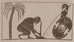 Drumul de 10 ani al lui Ulise către casă a fost descris de Homer în epopeea Odiseea. Ulise și oamenii lui au fost împinși către pământuri necunoscute de ei. Acolo Ulise a avut multe aventuri, una din ele fiind întâlnirea cu ciclopul Polifem pe care l-a orbit pentru a-și salva oamenii, sau consultarea profetului Tiresias în Hades. Pe insula Trinacria, oamenii lui Ulise au mâncat vițelul sfânt al zeului Helios, zeul soarelui. Pentru acest sacrilegiu, corăbiile lui Ulise au fost distruse și toți oamenii lui au murit. Ulise nu s-a atins de vițelul sacru și a supraviețuit; a ajuns apoi pe insula Ogigia, unde a trăit o perioadă cu nimfa Calipso. După șapte ani, zeii au decis să-l trimită pe Ulise acasă. Pe o plută mică, el a plutit până în Scheria, insula feacienilor, popor imaginar din mitologia greacă. Ei l-au ajutat să ajungă în Itaca.
