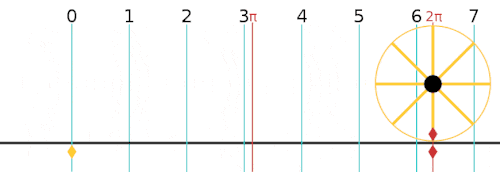 ![]() Un arc de cerc egal in lungime cu raza cercului corespunde unui unghi de 1 radian. Un cerc corespunde unui unghi de 2π radian. | |