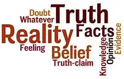 Opinia că există o realitate independentă de orice credință, percepție etc., se numește realism. Mai precis, filosofii sunt invitați să vorbească despre „realismul despre” un anumit lucru, cum ar fi realismul despre universalii sau realismul despre lumea exterioar. În general, unde se poate identifica orice clasă de obiect, a cărui existență sau caracteristici esențiale nu se bazează pe percepții, convingeri, limbaj sau orice alt artifact uman, se poate vorbi despre „realismul” acelui obiect.