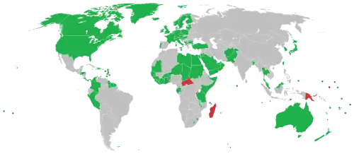 | Țară[11] | Data recunoașterii | Statutul de relații diplomatice reciproce | Membru internațional relevant | |