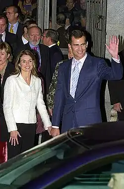 La 1 noiembrie 2003, spre surprinderea tuturor, Casa Regală a anunțat logodna Prințului Felipe de Asturia cu Letizia Ortiz Rocasolano.[3] Letizia s-a mutat la Palatul Zarzuela până în ziua nunții.[5]