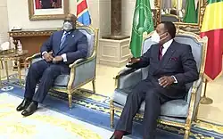 - ↑ Mwanamilongo, Saleh; Anna, Cara (). „Congo's surprise new leader in 1st peaceful power transfer”. Associated Press. Arhivat din original la . Accesat în .