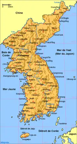 S-a ajuns la acordul de divizare a peninsulei în două zone de ocupație militară — partea de nord administrată de Uniunea Sovietică, iar partea de sud administrată de Statele Unite. La miezul nopții în 10 august 1945, doi locotenenți-colonei ai armatelor au ales paralela 38 drept linie de divizare. Trupele japoneze de la nord de această linie au fost nevoite să se predea Uniunii Sovietice, iar trupele la sud s-au predat Statelor Unite ale Americii.[1] Acest lucru nu a fost destinat inițial pentru a rezulta o divizare de lungă durată, dar politica Războiului Rece a dus la instaurarea a două guverne separate în cele două zone în 1948 și creșterea tensiunilor care au împiedicat cooperarea. Aspirația multor coreeni pentru o unificare pașnică a fost curmată atunci când a izbucnit Războiul din Coreea în 1950.[2] În iunie 1950, Coreea de Nord a început războiul prin invadarea Coreei de Sud, cu Mao Zedong încurajând confruntarea cu Statele Unite[3] și Iosif Stalin sprijinind intens invazia.[4] După trei ani de lupte care au implicat ambele Corei, China și forțele ONU conduse de SUA, războiul s-a încheiat printr-un armistițiu, aproximativ pe aceleași frontiere. Cele două țări nu au semnat niciodată un tratat de pace, ceea ce înseamnă că Coreea de Nord și Coreea de Sud sunt încă, oficial, în război.