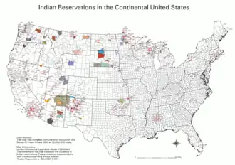 Există 310 de rezervații ameri-indiene în Statele Unite, însemnând că nu toate cele 550 triburi recunoscute au o zonă recunoscută ca rezervație; dar unele dintre triburi au mai mult decât o rezervație, unele folosesc unele dintre rezervații în comun, iar alte triburi nu au niciuna. În plus, datorită structurării și întabulării foarte diferite în timp a diferitelor porțiuni de pământ, care permisese vinderea pământului din unele rezervații către persoane care nu sunt de origine ameri-indiană, unele rezervații sunt masiv fragmentate, prezentând bucăți de pământ care sunt deținute individual și colectiv tribal ca enclave sau exclave. Această fragmentare a zonelor imobiliare, care ar fi trebuit să fie continue, creează probleme foarte complicate de natură administrativă, juridică și organizatorică.[1]