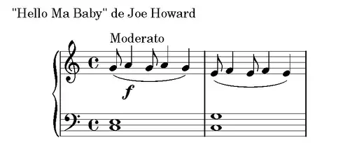 Sincoparea este pronunțată în muzica de Jazz. În exemplul de aici, schimbarea este de o optime care în metrul 4/4 este egală cu 1/2 timpi.