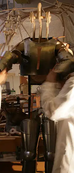 Sursă: en „Leonardo Da Vinci Robotic Expertise! - and his Robots!”. leonardo-da-vinci-biography.com. . Accesat în . - ↑ ro „Robotul lui Leonardo da Vinci”. lovendal.net. . Arhivat din original la . Accesat în . Categorie: Știință Arhivat în , la Wayback Machine..