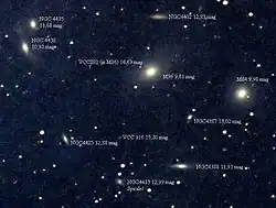 - ↑ Binggeli, Bruno; Sandage, Allan; Tammann, Gustav (). „Studies of the Virgo Cluster. II – A Catalog of 2096 Galaxies in the Virgo Cluster Area”. Astronomical Journal. American Astronomical Society. 90: 1681–1759. Bibcode:1985AJ.....90.1681B. doi:10.1086/113874. Accesat în .