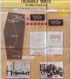 Atrocitățile au început în luna iunie 1941 prin pogromul de la Iași. În așa-numitele trenuri ale morții (trenuri cu deportați plimbate atâta timp prin Moldova, până când pasagerii au murit de sete și de foame) au fost uciși aproximativ 4.400 de evrei.[20] În conformitate cu raportul oficial al Comisiei Internaționale privind Studierea Holocaustului în România: „În trenul morții care a plecat din Iași către Călărași, în sudul României, care transporta probabil până la 5.000 de evrei, doar 1.011 au ajuns la destinație în viață după șapte zile. (Poliția română a numărat 1.258 de trupuri). Trenul morții către Podu Iloaiei (la 15 km de Iași) îmbarcase aproape 2.700 de evrei la plecare, dintre care doar 700 au mai coborât în viață. Trupele române care au ocupat orașul Odessa s-au făcut responsabile de masacrele de la Odesa, de la Dalnic și din lagărul de concentrare Bogdanovca în timpul cărora 40.000 de evrei au fost împușcați în toamna anului 1941.[21][22][23]
